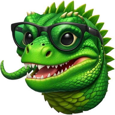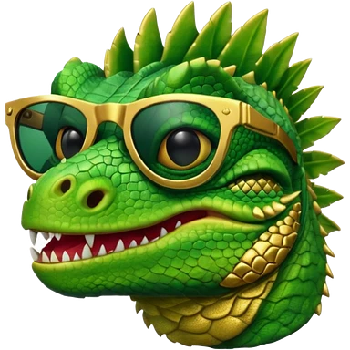 capitalist iguana head with black sunglasses smiling venomously emoji