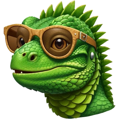 capitalist iguana head with black sunglasses smiling sarcastically emoji