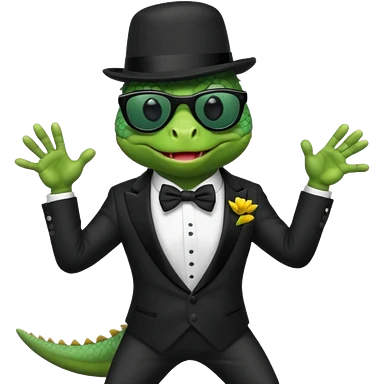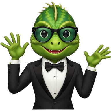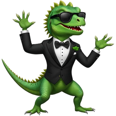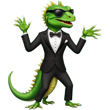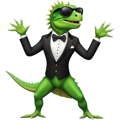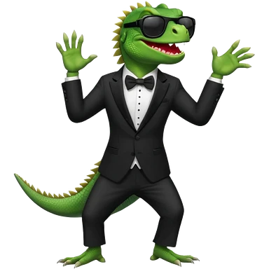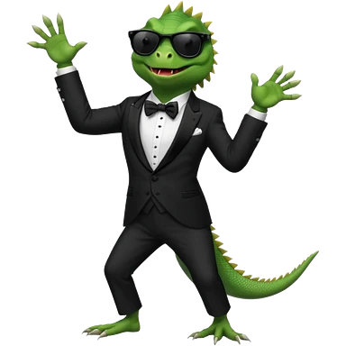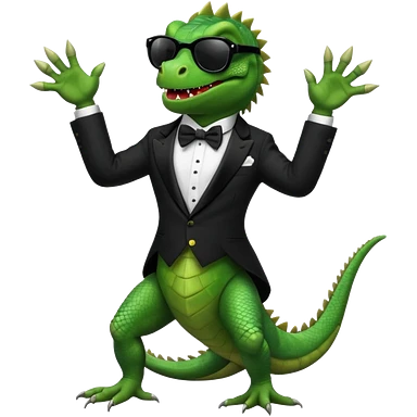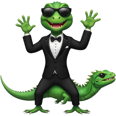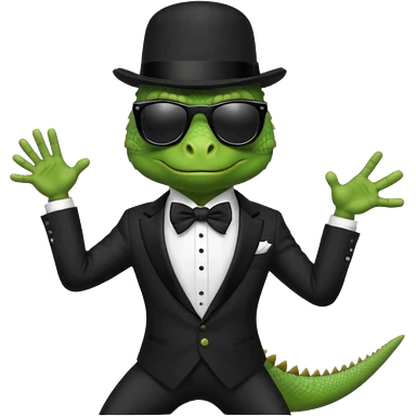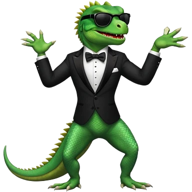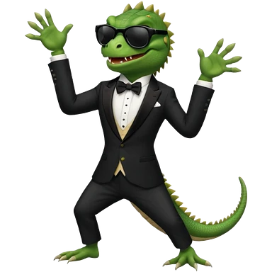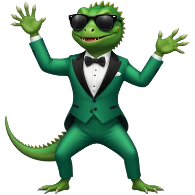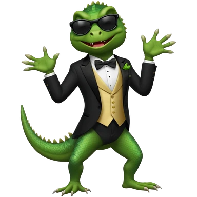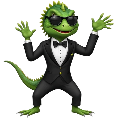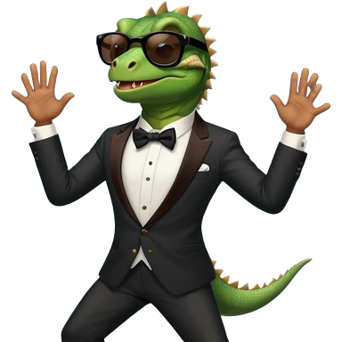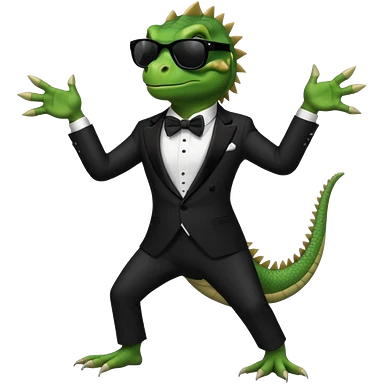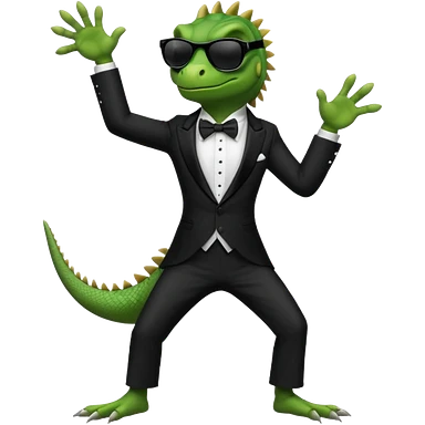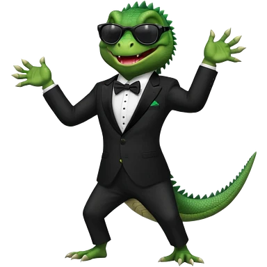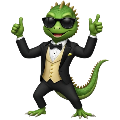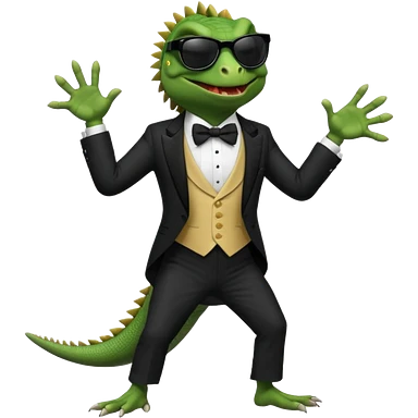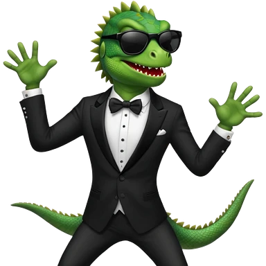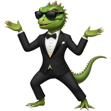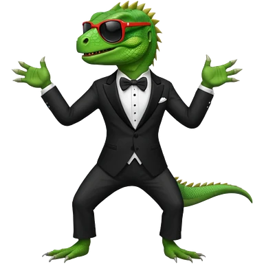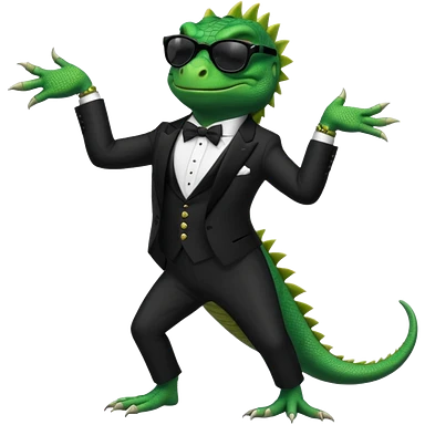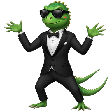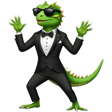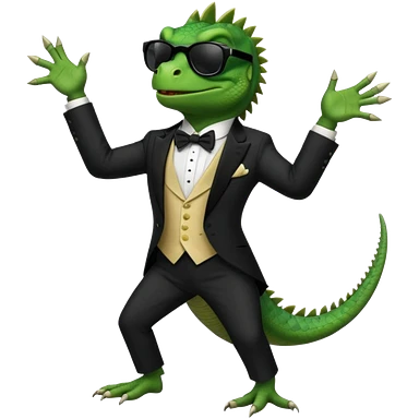 capitalist iguana in tuxedo and black sunglasses dancing emoji | AI Emoji Generator