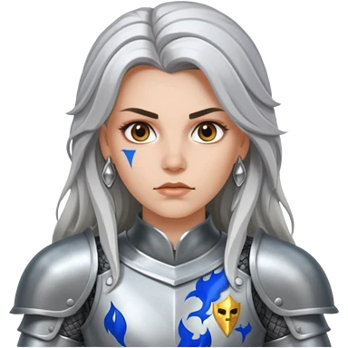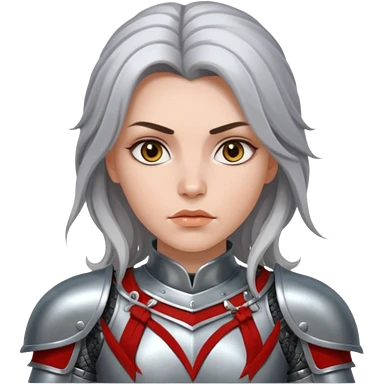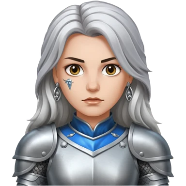 White Long Haired Women, Warrior woman — silver armor, piercing gaze emoji