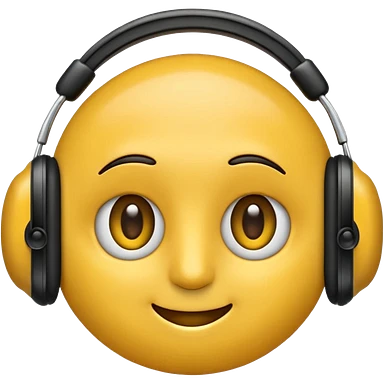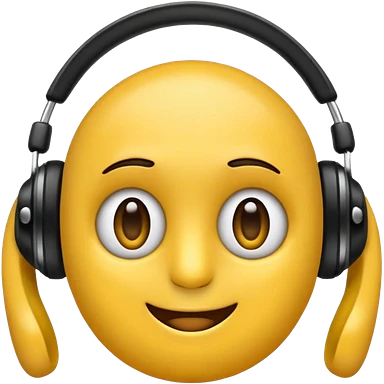 Ein gelber runder Emoji. Augen geslossen. Total im moment. Glpcklich, leichtes lächeln. Verträumt. Leichtigkeit. Freiheit. Overearkopfkörer auf und im hintergrund kleine musiknoten emoji