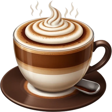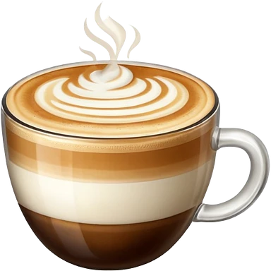 cappuccino glass mug with visible layers of coffee and milk, topped with foam emoji emoji