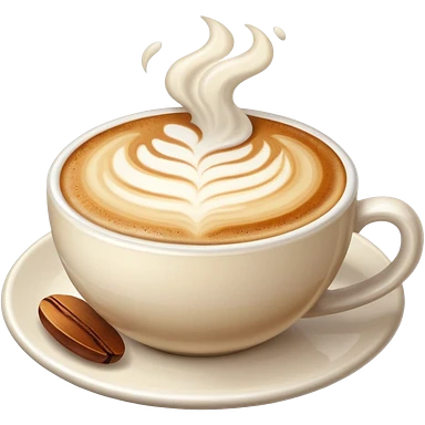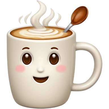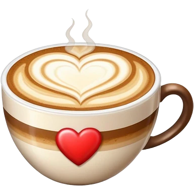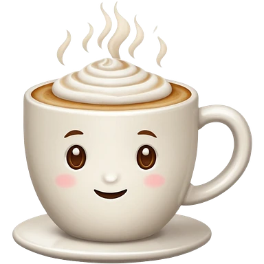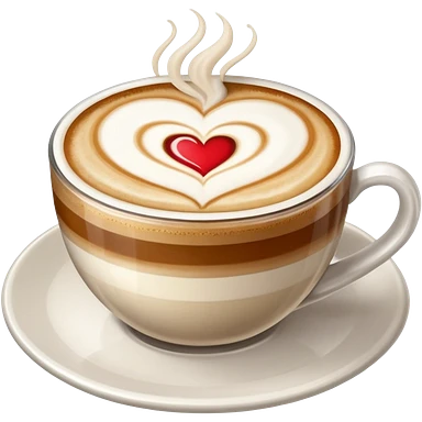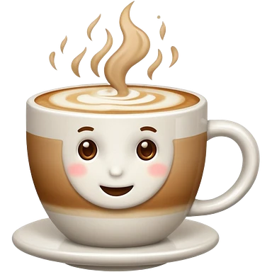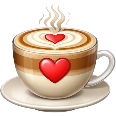 cappuccino cup with a heart-shaped latte art on top, steam rising, cheerful emoji emoji