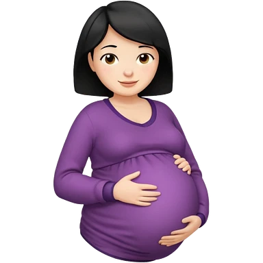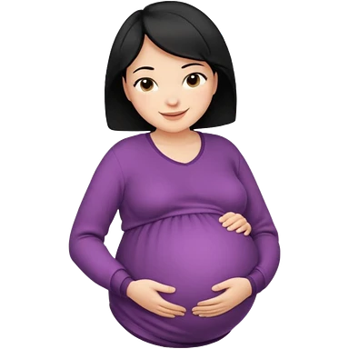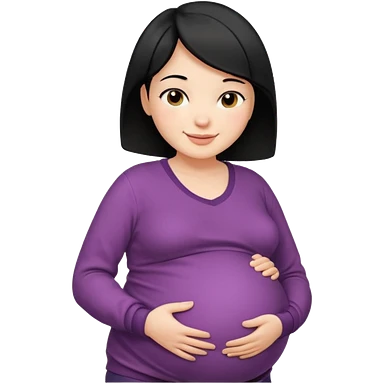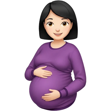 pregnant woman with short black hair happily touching her big belly while wearing warm clothes emoji