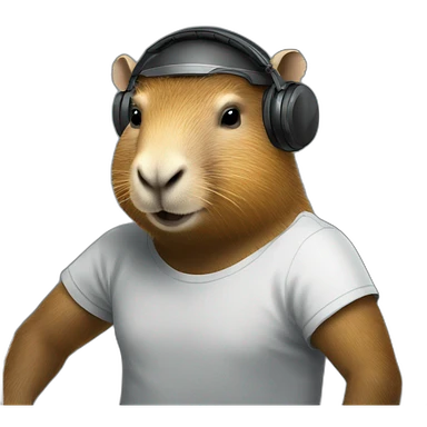 White dj mixing with dj booth, headphone on head, no cap, not bald, emoji