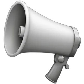 A detailed megaphone with a metallic body and glossy red cone emoji