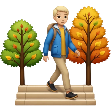 Character walking forward, seasons changing behind each step emoji