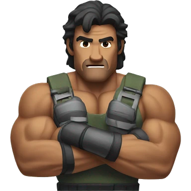 o rosto do Rambo com faixa vermelha na cabeça no corpo do The Rock de corpo inteiro emoji