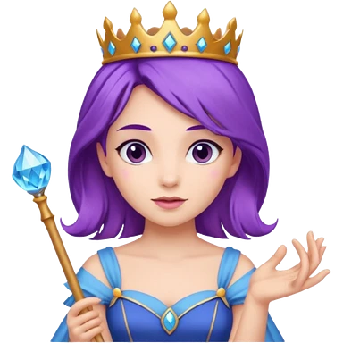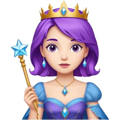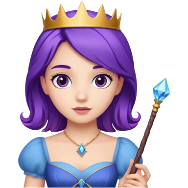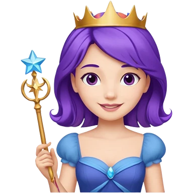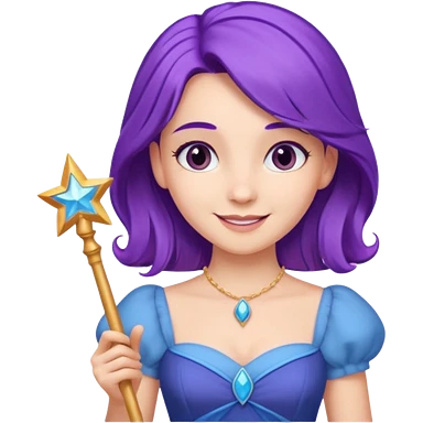 Princesses with Magic Wand in Purple Hair, blue dress emoji