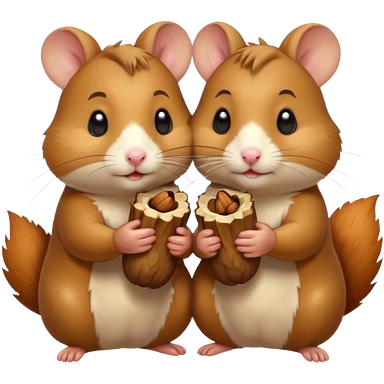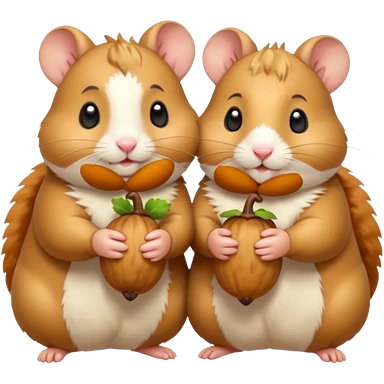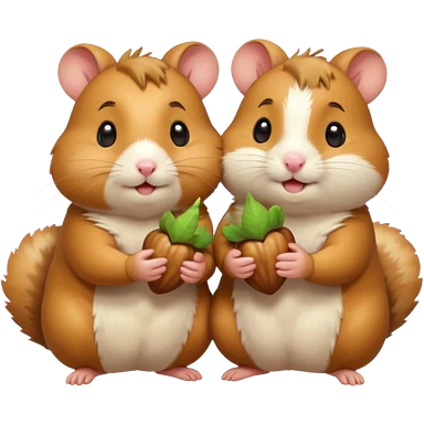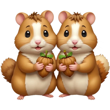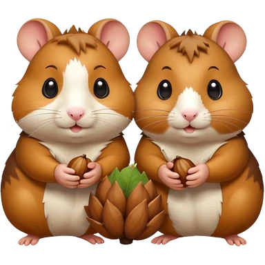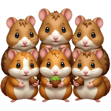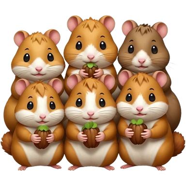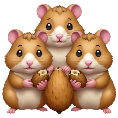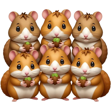 cartoon-style hamster sharing acorns with other cartoon-style hamsters emoji
