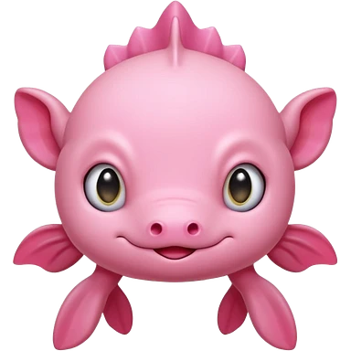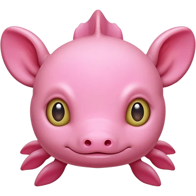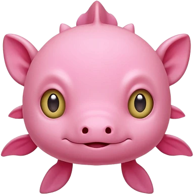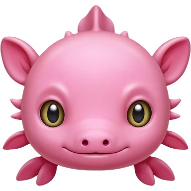 Cartoon pink axolotl face emoji, front view, flat wide head, external gills on both sides, big round eyes, small mouth, no snout, vector style, flat colors, transparent background. emoji
