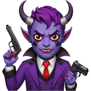 Cara redonda Diablo morado garrando dos pistolas emoji