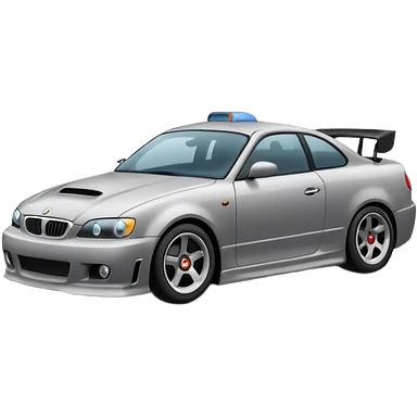 Carbonized Metallic dark blue and rosegold-accented racing car for furry-faced grey bearded evil alien scary robot teddy bear and passenger with custom aero body and rear spoiler (Star Wars style) emoji