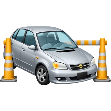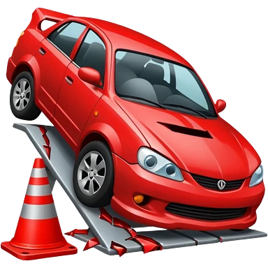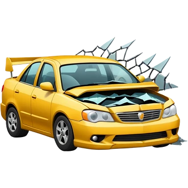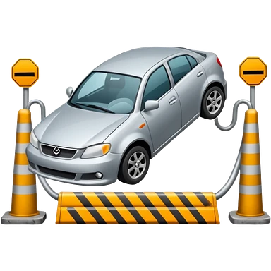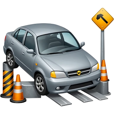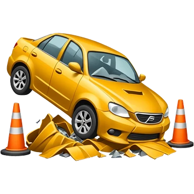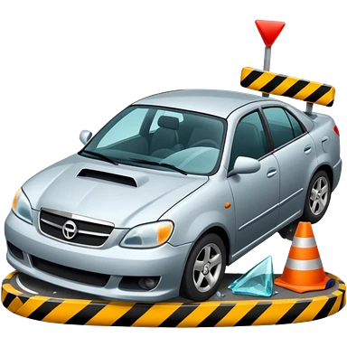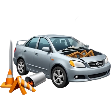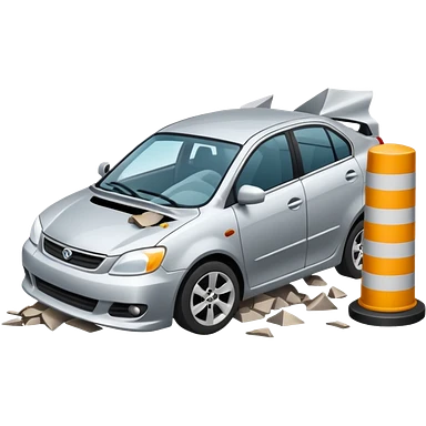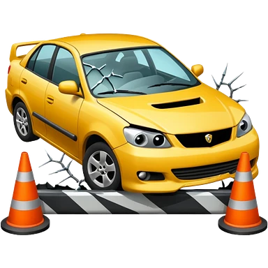 car crashed to a trafic barrier barrier in front of car and car front panel broken emoji