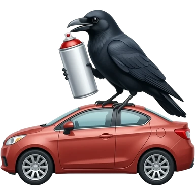 car and a crow on a spray paint can emoji