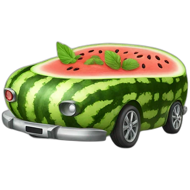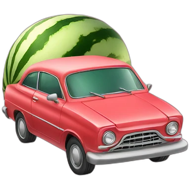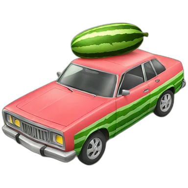 A raccoon with a watermelon behind the wheel of a car and a spanner emoji