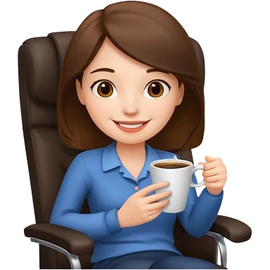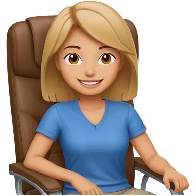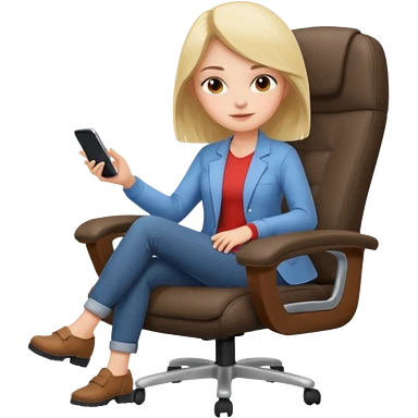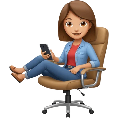 Cartoon faced girl relaxing in an office chair and smiling emoji