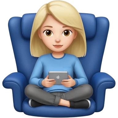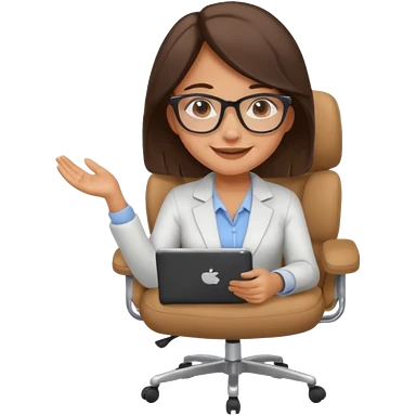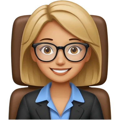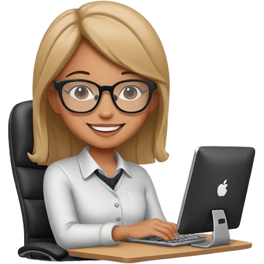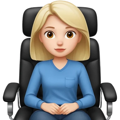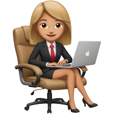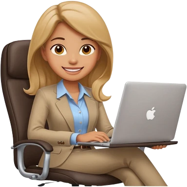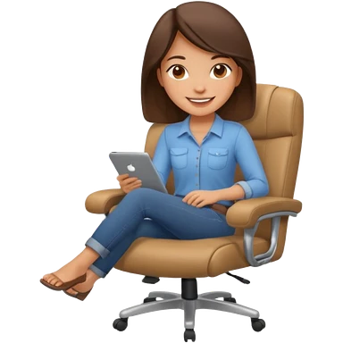 Cartoon faced girl relaxing in an office chair and smiling and working emoji