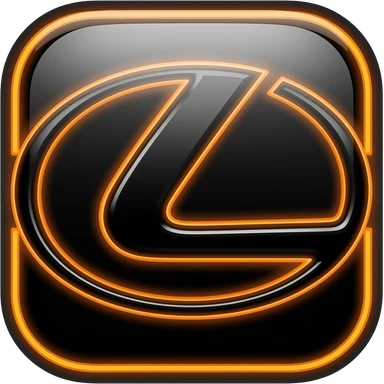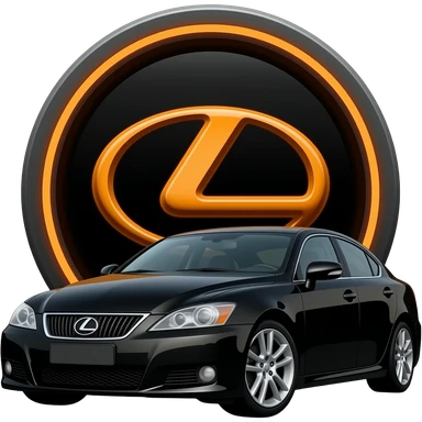 Make a shiney black Lexus logo thats outlined in an neon dark orange outlined Tron legacy type of style. place the car a 2008 lexus is250 hiding behind that Lexus logo emblem emoji