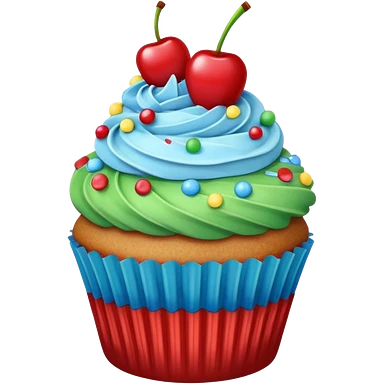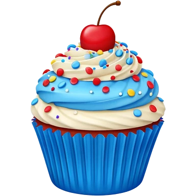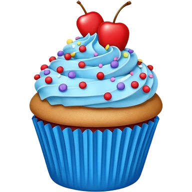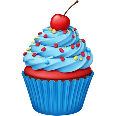 Cartoon Cupcake: blue cream, red paper, sprinkles with cherry on top emoji