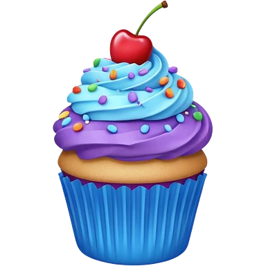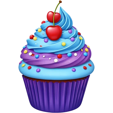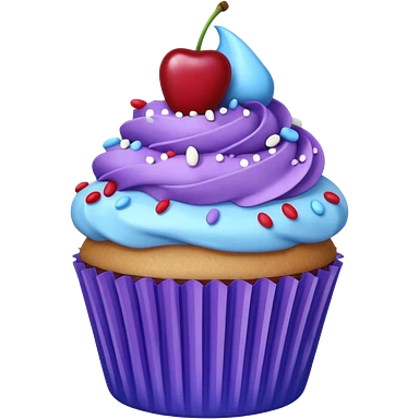 Cartoon Cupcake: blue cream, purple paper, sprinkles with cherry on top emoji