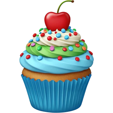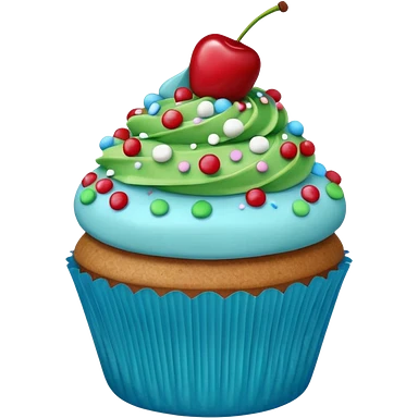 Cartoon Cupcake: blue cream, green paper, sprinkles with cherry on top emoji