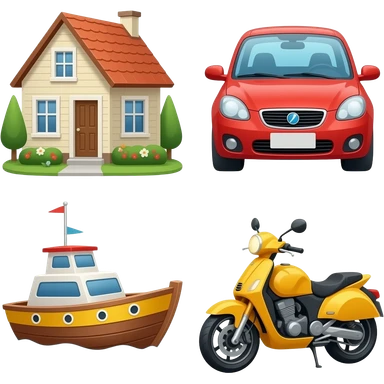 Collage of house, car, boat, motorcycle emoji