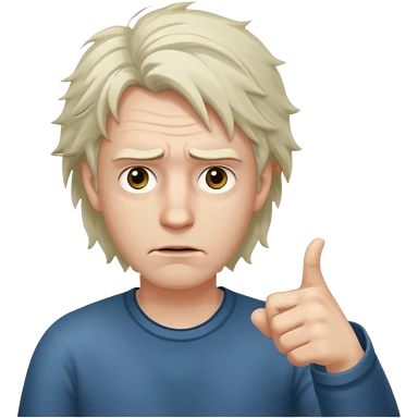 man with disheveled hair, ragged chlothing, and shaking emoji