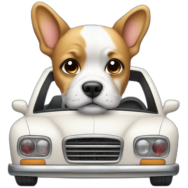 A girl with a pink dog and a purple car with yellow sunglass emoji