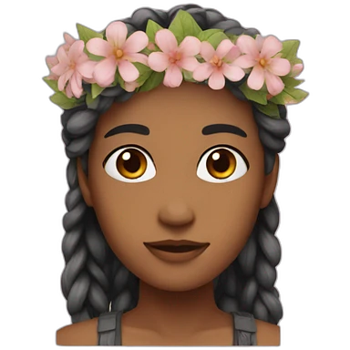 bald man with black beard and brown eyes and yellow skin with a colorful flowercrown on his head emoji