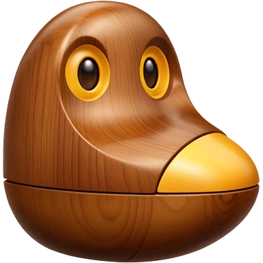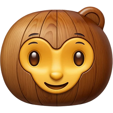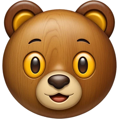 A carved wooden bear toy emoji, made of warm oak with a smooth, polished finish. The bear has simple, rounded features with engraved details for eyes and nose, giving it a handcrafted, vintage look. The texture of natural wood grain is visible, adding authenticity. emoji