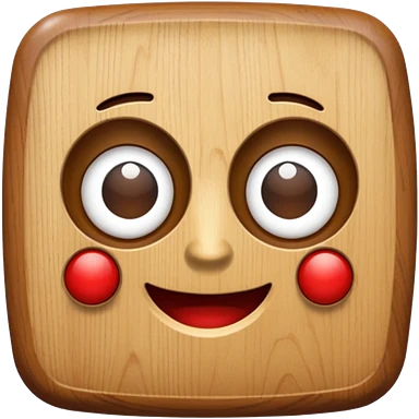 A cute wooden toy train with a cheerful face and rosy cheeks emoji