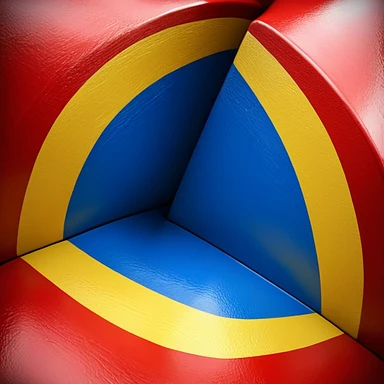 rectangulo con 5 lineas amarillas de arriba a abajo i 5 de rojas, intercaladas entre si, empezando por las amarillas en ambos extremos. en la parle de arriba un triángulo azul invertido, con la punra mirando hacia abajo, y dentro, una estrella de 5 puntas blanca, grande, en el cendtro del triángulo emoji