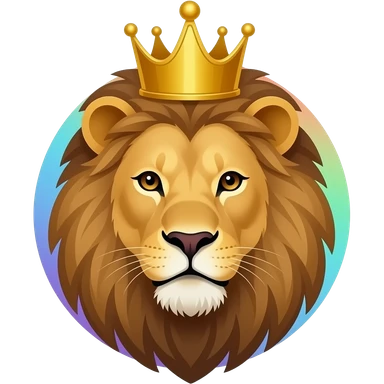 Cara de un leon con una corona y el fondo tornasol emoji | AI Emoji Generator