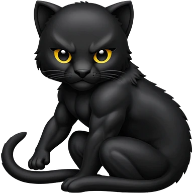 Un emoji de pantera negra con un rostro de alerta. Tendría orejas puntiagudas y ojos brillantes, sin manchas visibles en el cuerpo. La expresión sería intensa y misteriosa, destacando la elegancia del animal. se tiene que ver el cuerpo enteo emoji