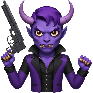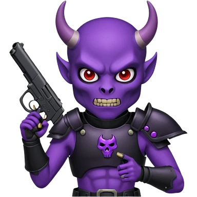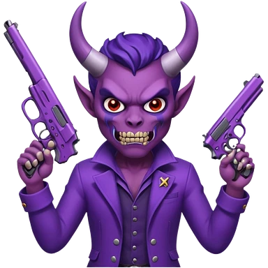 Cara redonda Diablo morado garrando dos pistolas emoji | AI Emoji Generator