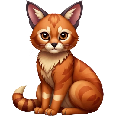 Patterned marked elegant furry cute beautiful cool edgy Caracal-Sphynx-Red-Panda-fusion-hybrid-animal-creature, full body emoji