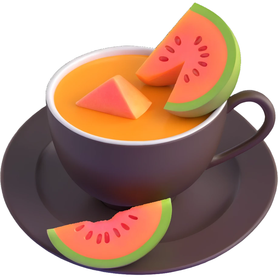 carajillo in an espresso cup with a slice of cantaloupe melon beside it emoji | AI Emoji Generator