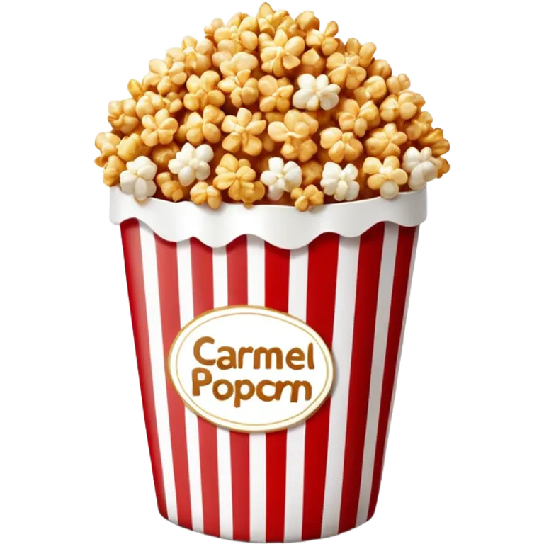 caramel popcorn in a large red and white vertically striped package, thick bold stripes, golden brown caramel popcorn, minimalist design, no text or additional elements on package, only thick red and white stripes pattern, glossy iOS emoji styleemoji