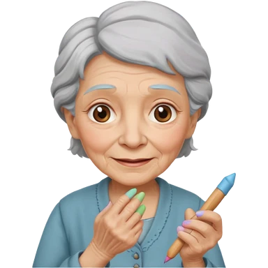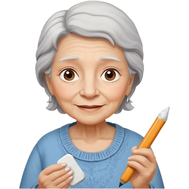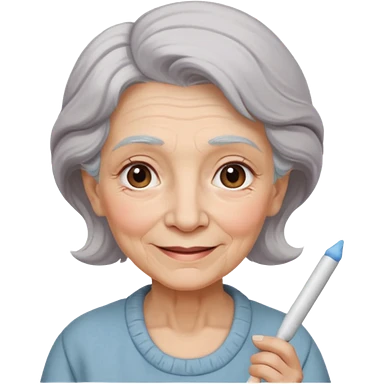 Kind Teacher – old woman, soft smile, holding chalk emoji