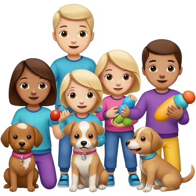 hands placing colorful toys into a storage bin, simple and friendly emoji