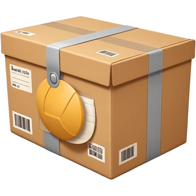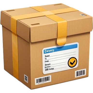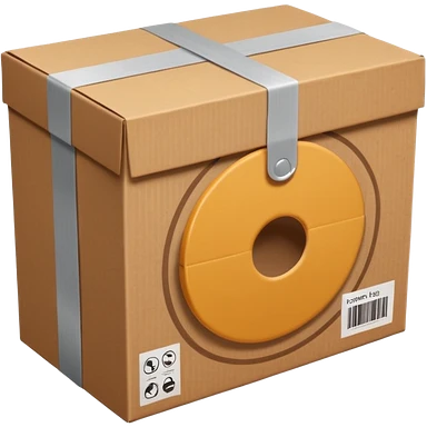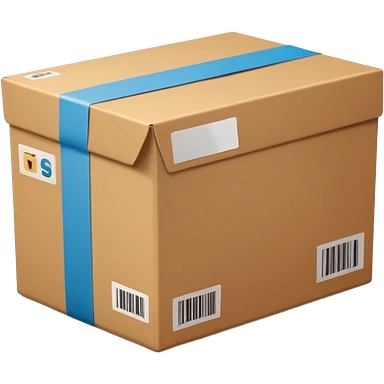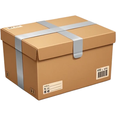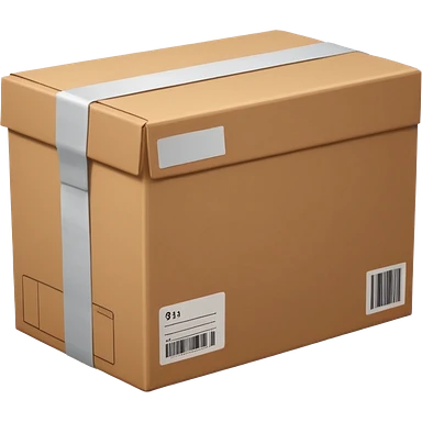 cardboard delivery box with a shipping label and tape. Rounded, glossy, smooth, soft shadows, white background. emoji | AI Emoji Generator