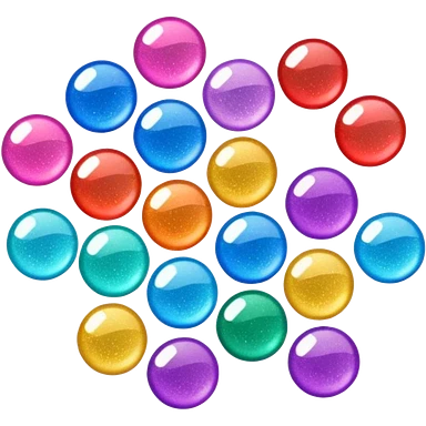 scattered glitter, sparkling and shining in multiple colors. Rounded, glossy, smooth, soft shadows, white background. emoji