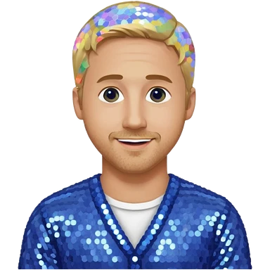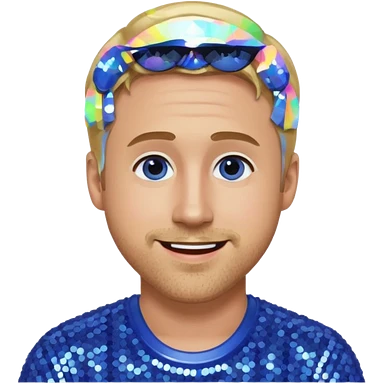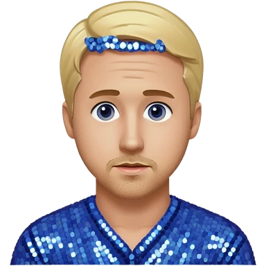 Ryan Gosling with blonde hair, periwinkle sequin suit emoji