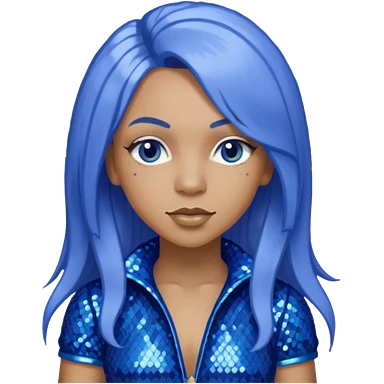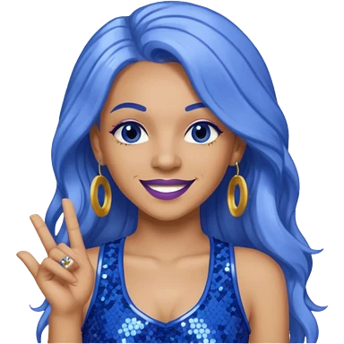 Cardi B with long dark blue hair, light periwinkle sequin outfit emoji | AI Emoji Generator