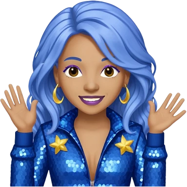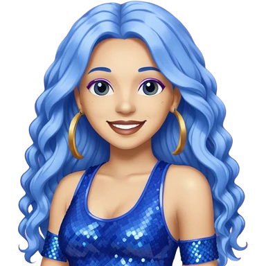 Spice, Dancehall Singer with long periwinkle hair, blue sequin outfit emoji