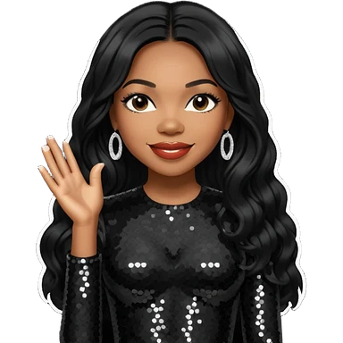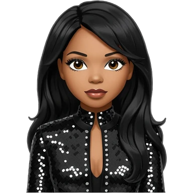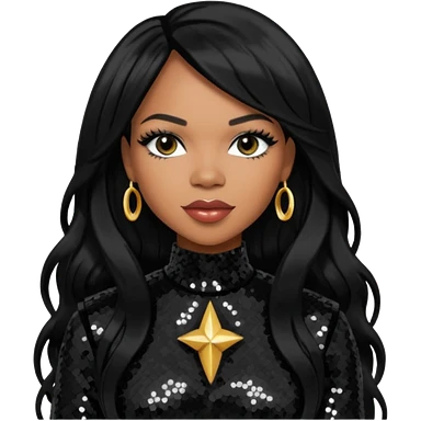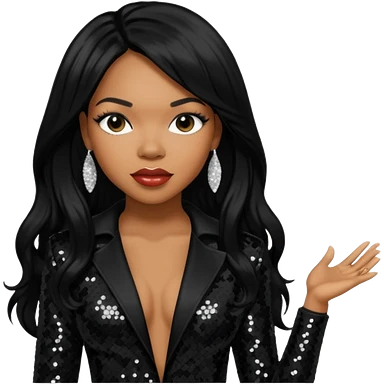 Cardi B with long jet black hair, black sequin outfit emoji | AI Emoji Generator