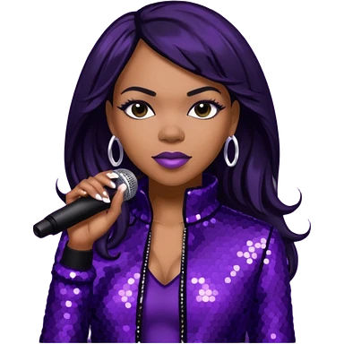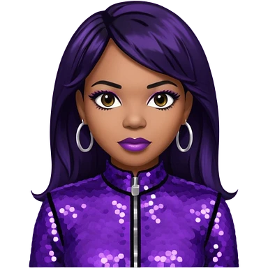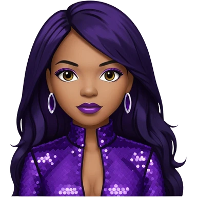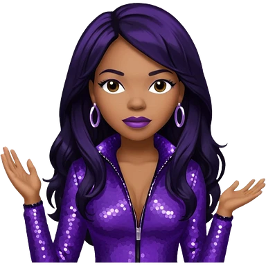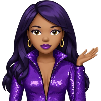Tenitra Michelle Williams (b.1979), R&B Singer from Destiny's Child with long jet black hair, medium dark skin, dark purple sequin outfit emoji