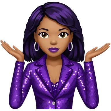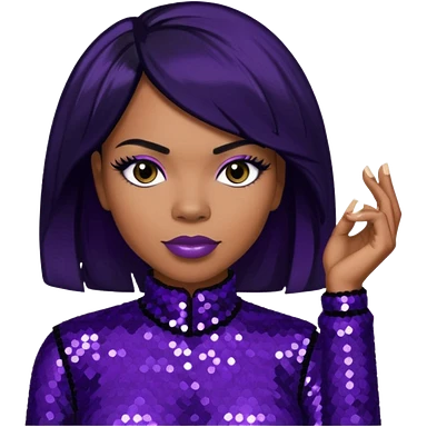 Tenitra Michelle Williams (b.1979), R&B Singer from Destiny's Child with jet black hair, medium dark skin, dark purple sequin outfit emoji