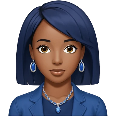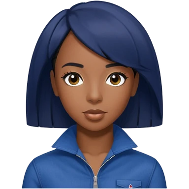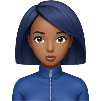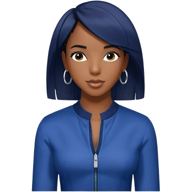 Kelly Rowland with short jet black hair, indigo outfit emoji
